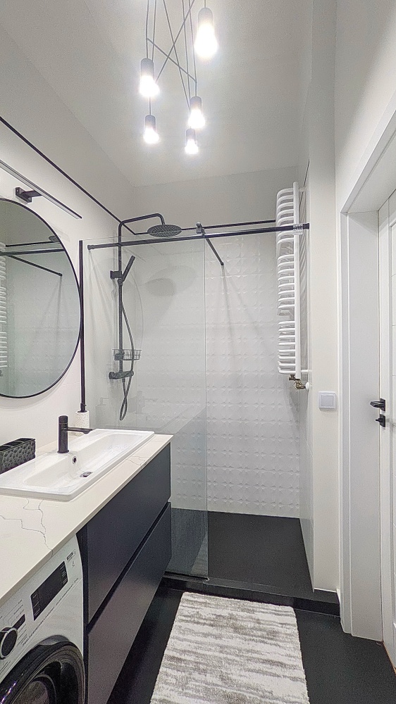 – łazienki z kabiną prysznicową oraz pralko-suszarką;