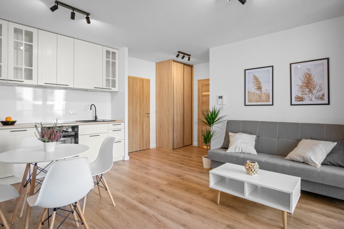 For sale: a 2-room apartment in Scandinavian style available immediately located in the prestigious Miasteczko Greenwood estate located on Monteverdiego Street in Warsaw, Białołęka district. Finished to a high standard.