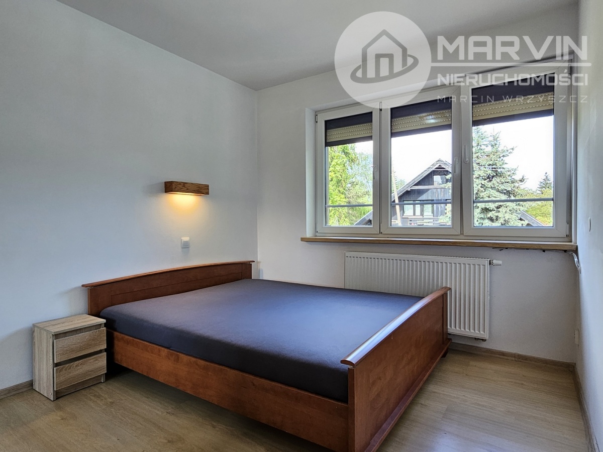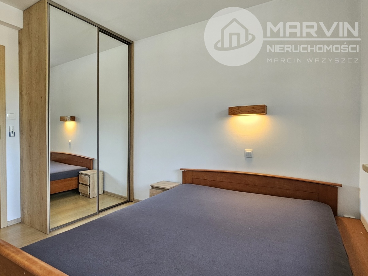 Sypialnia – ustawna, z dużą szafą przesuwną; możliwość pozostawienia łóżka i mebli.