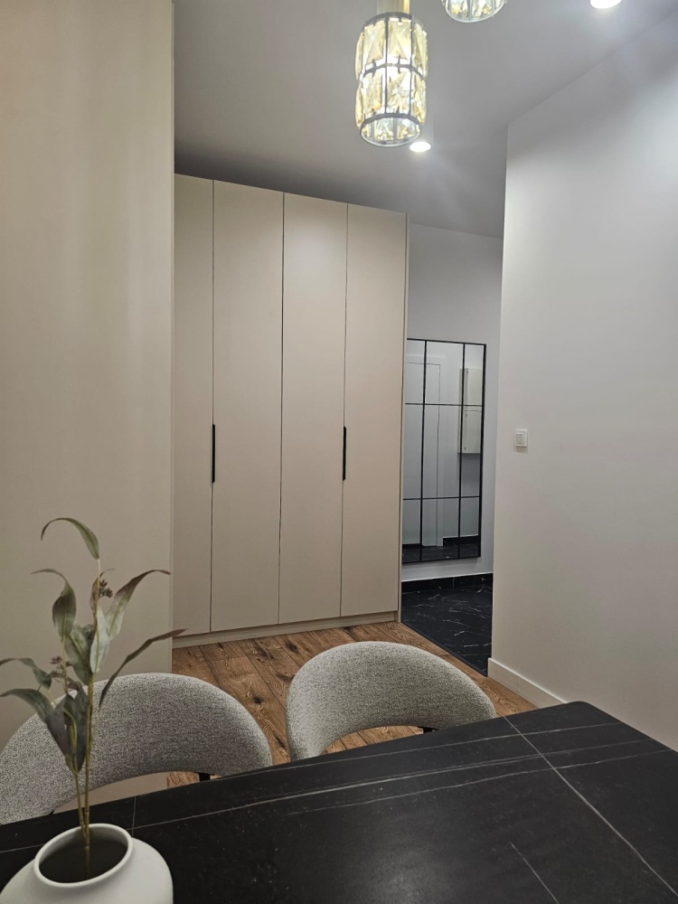 Na sprzedaż nowoczesny apartament w standardzie premium, w pełni wykończony pod klucz i gotowy do zamieszkania od zaraz. Wnętrze zaprojektowane spójnie i funkcjonalnie, z wykorzystaniem wysokiej jakości materiałów oraz mebli wykonywanych na wymiar.