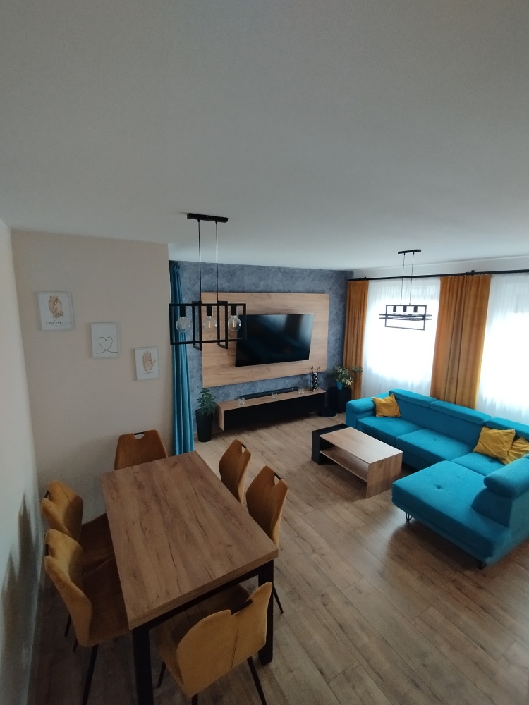 Salon z aneksem kuchennym: Przestronny, z dużą ilością miejsca do przechowywania, oknem w kuchni oraz wyjściem na balkon.