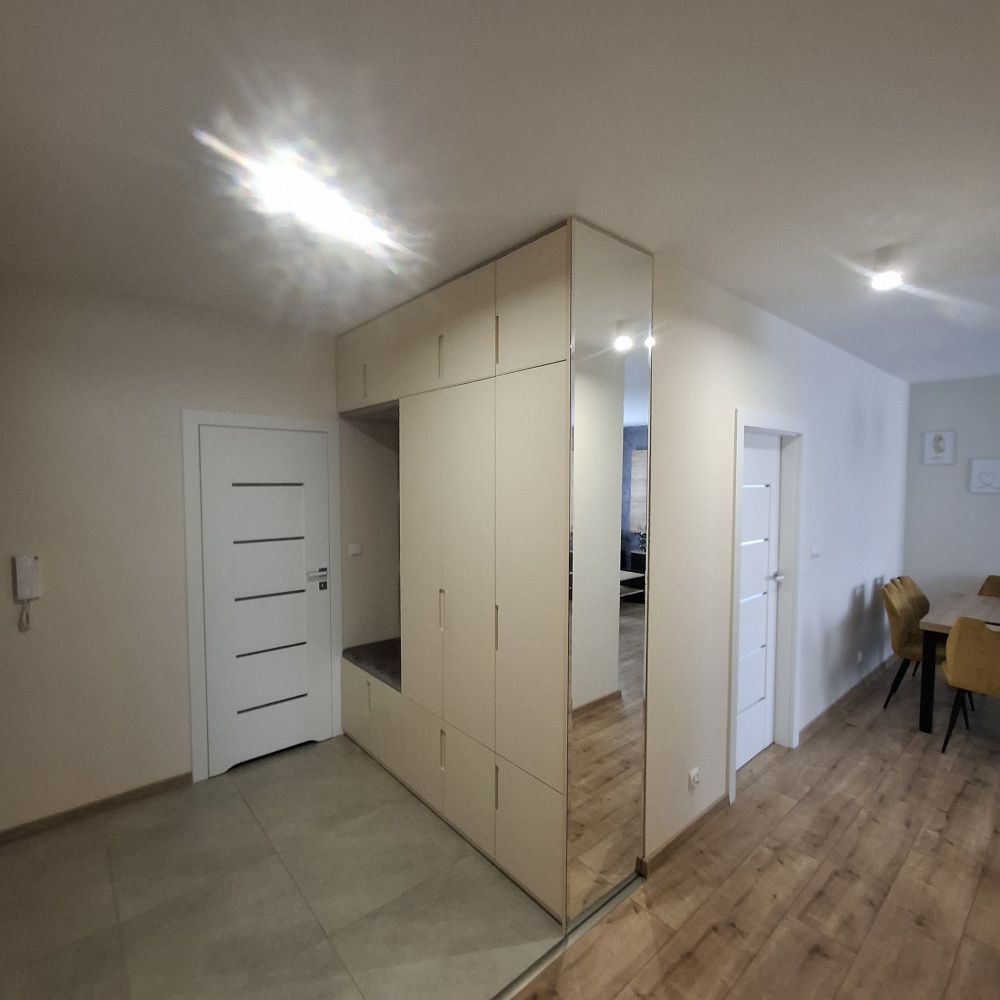 Standard: Mieszkanie wykończone, gotowe do wejścia. W każdym pomieszczeniu zabudowy meblowe na wymiar.