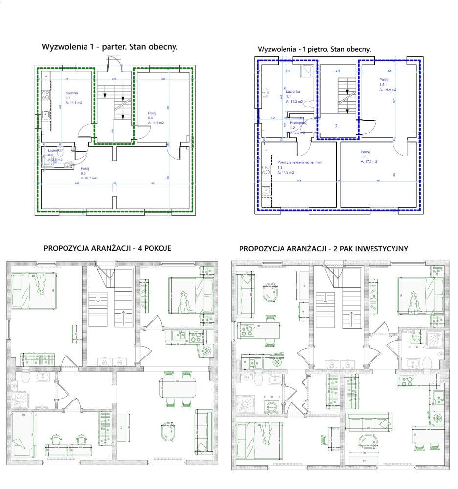 Możliwość zrobienia mieszkań 4 mieszkań dwu pokojowych po ok. 30-32m2.