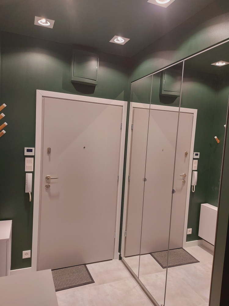 w mieszkaniu wielowymiarowe oświetlenie, umożliwia zarówno pracę, codzienne funkcjonowaniem jak i wieczorny odpoczynek.