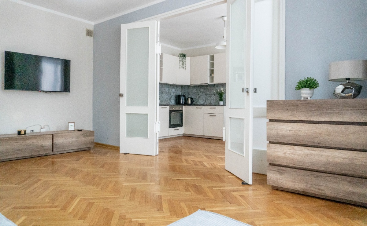 Pomimo centrum Warszawy w mieszkaniu jest bardzo cicho. Niestandardowa wysokość pomieszczeń 2,7 m daje poczucie prawdziwej przestrzeni w sercu miasta.