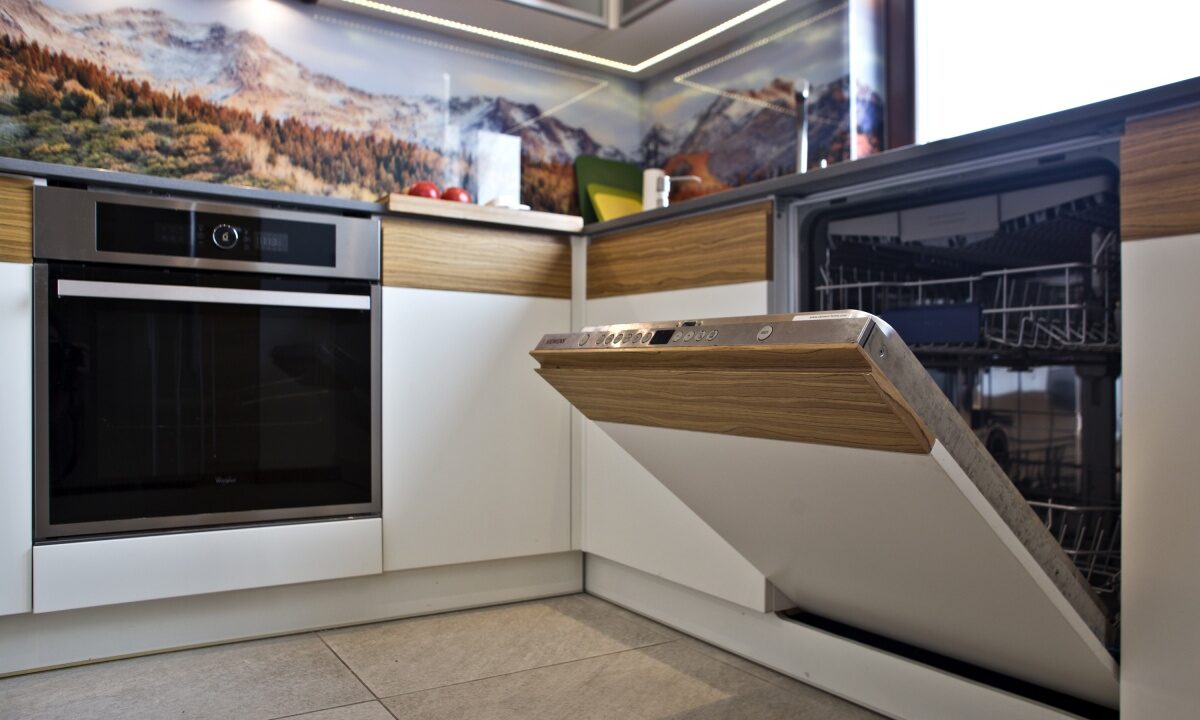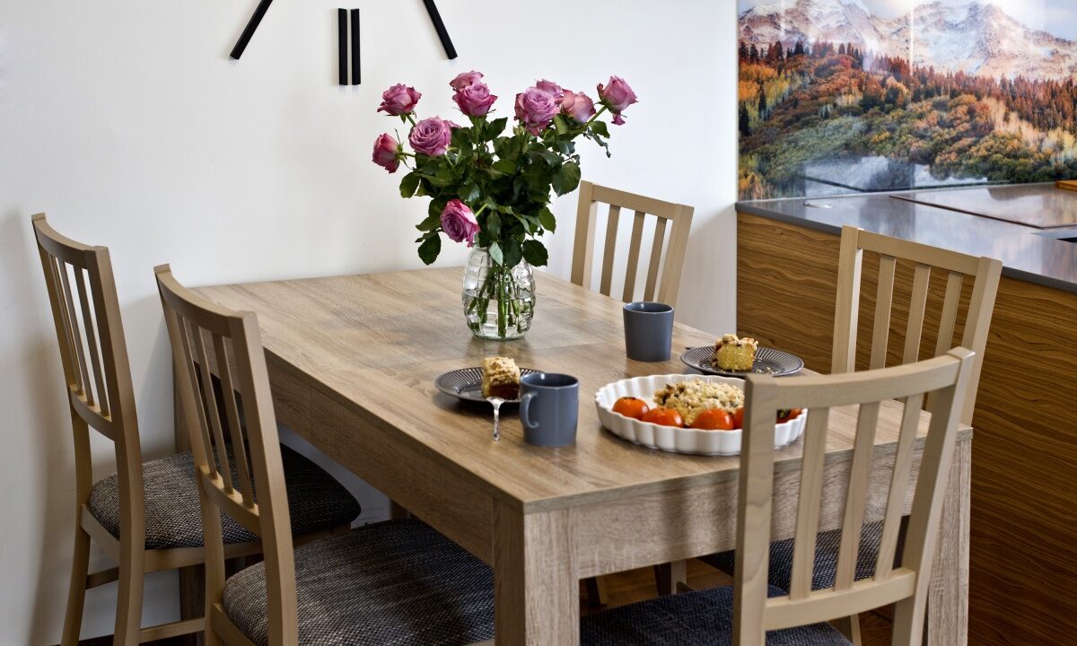 – w pełni wyposażona kuchnia z dużym oknem: lodówka, piekarnik, płyta indukcyjna, zmywarka
