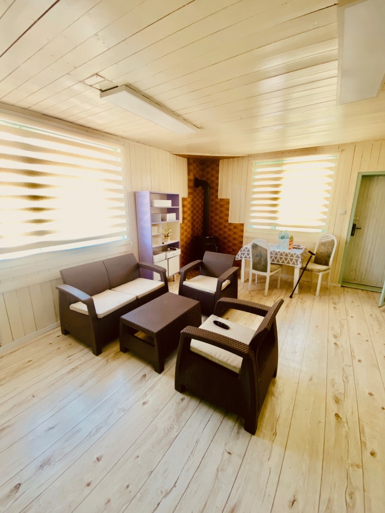 – ogrzewanie elektryczne, dodatkowo tzw. koza na drewno oraz kominek