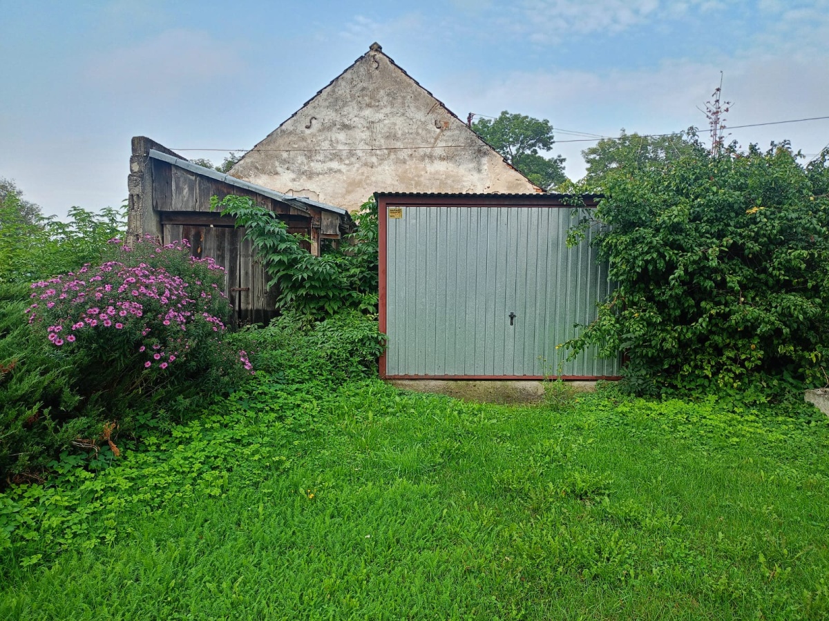 Wraz z domem jest także stajnia, stodoła oraz blaszany garaż: