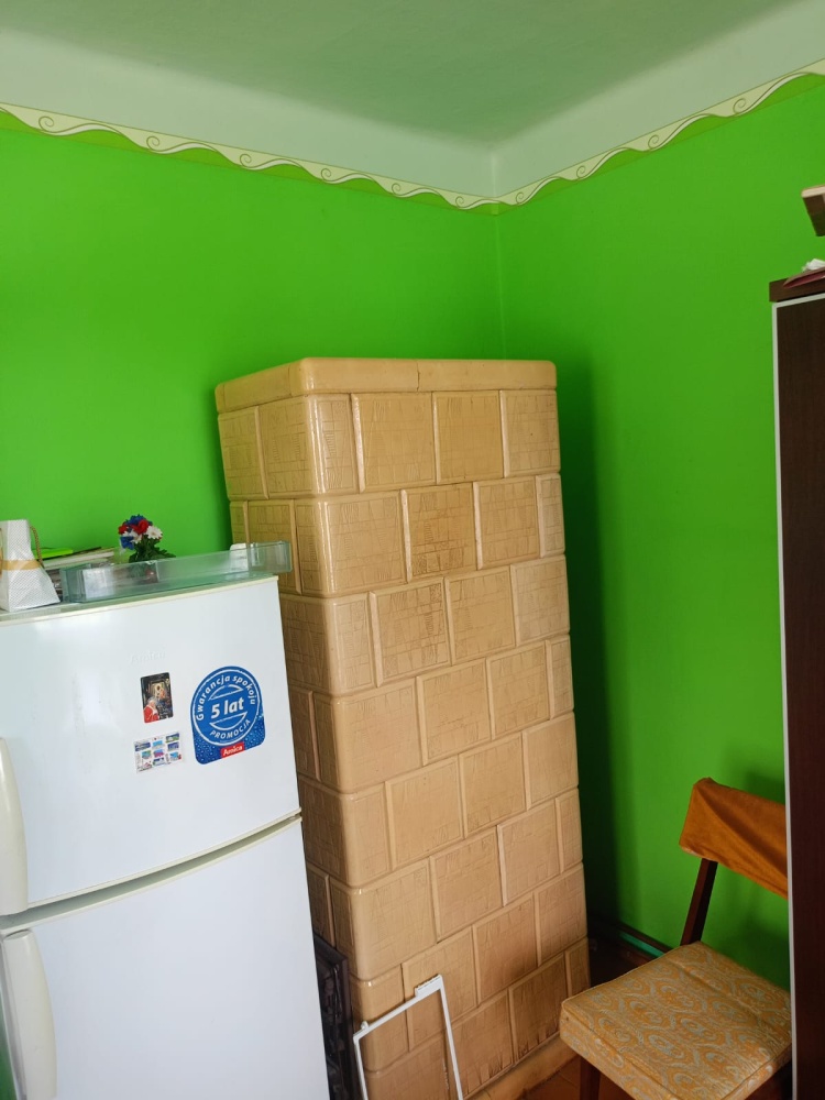 Ogrzewanie centralne gazowe posiadają – kuchnia, łazienka, sień, jeden pokój (z zielonymi ścianami na zdjęciu).