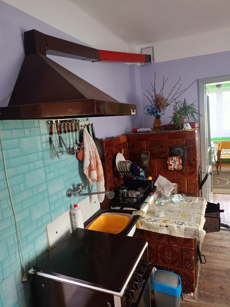 Kuchnia posiada kuchenkę gazowo-elektryczną oraz z dawnych czasów piec chlebowy, kaflowy.