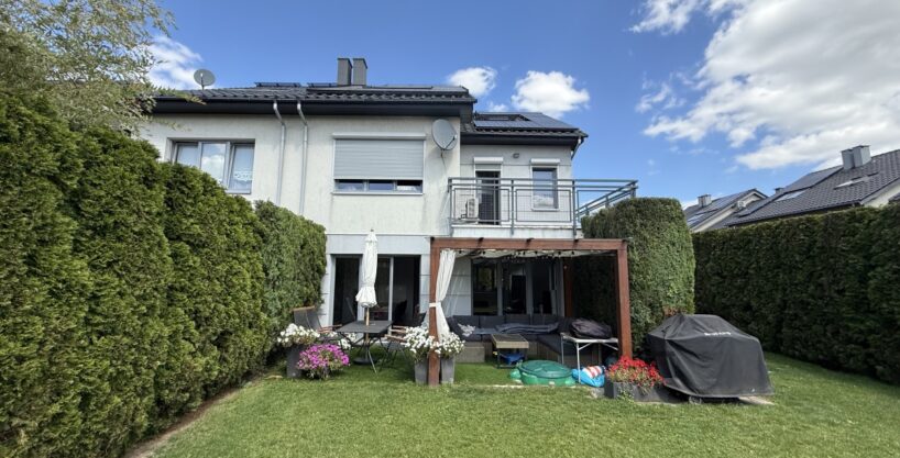 Dużym atutem jest zadbany ogród z drewnianą pergolą oraz nowym, automatycznym systemem nawadniania sterowanym przez Wi-Fi (Rainbird) oraz założonym w 2025 roku trawnikiem Dodatkowo wysokie tuje zapewniające prywatność. Południowo – zachodnia ekspozycja salonu i ogrodu – nasłonecznienie przez cały dzień.