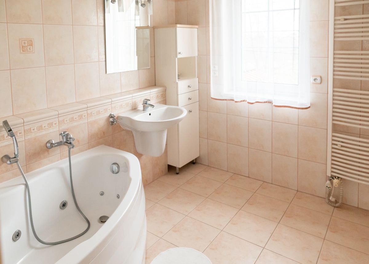 • dwie łazienki (na parterze z prysznicem, oraz na piętrze z wanną z hydromasażem)