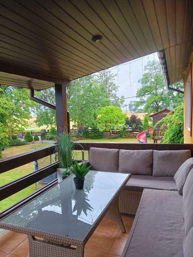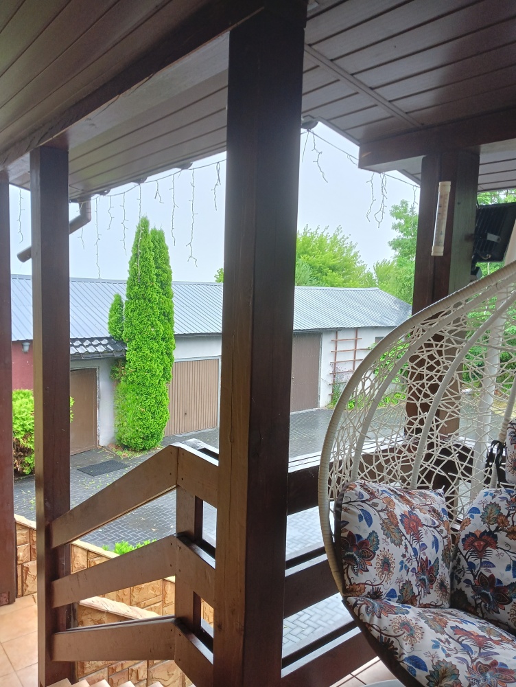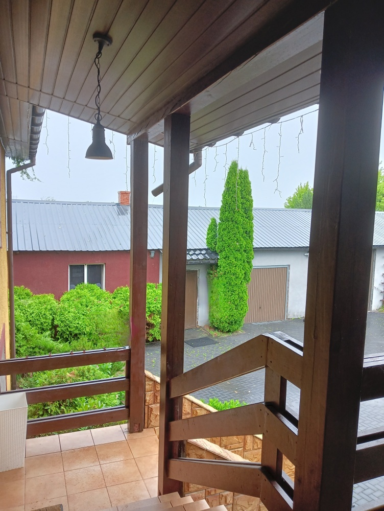 Na zewnątrz mamy budynek gospodarczy 160mkw, murowany dach pokryty blachą w 2024r. w którym mamy trzy miejsca parkingowe, pomieszczenia socjalne, a także pomieszczenie mieszkalne.