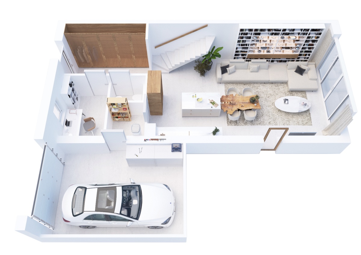 – 2 łazienki (4 i 4,5 m²) oraz WC na parterze, osobna pralnia oraz garderoba