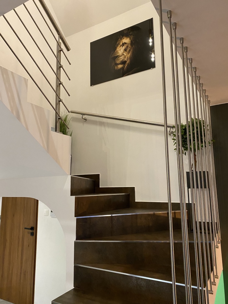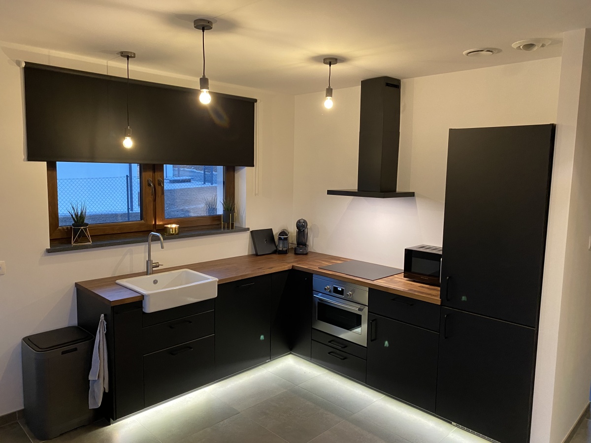 Na parterze wykończenie podłogi płytkami, pięknie wykończone schody. Na piętrze znajduja się panele podłogowe. Kuchnia nowoczesna i wyposażona we wszystkie niezbędne urządzenia AGD (płyta indukcyjna, lodówka z oddzielną zamrażalką, combi piekarnik z funkcja magnetronu, zmywarka, magnetron) . Łazienki są równiez nowowczesne, komfortowe i ładnie wykończone.