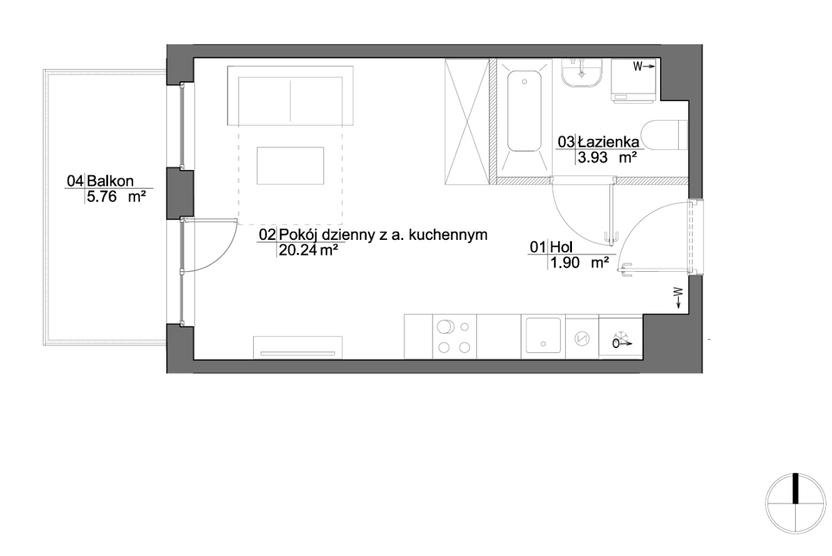 – Pokój z Aneksem Kuchennym 20,5 mkw.