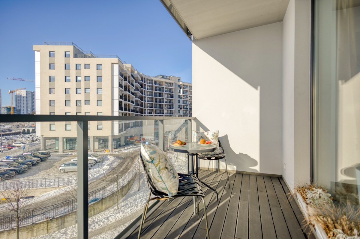 Profesjonalnie zaaranżowany obszerny salon z aneksem kuchennym, przytulana sypialnia, przedpokój, stylowa łazienka pozwala połączyć dyskretny luksus z funkcjonalnością. Dodatkowym atrybutem mieszkania jest znakomicie nasłoneczniona przestronna loggia, stworzona do słonecznych kąpieli.