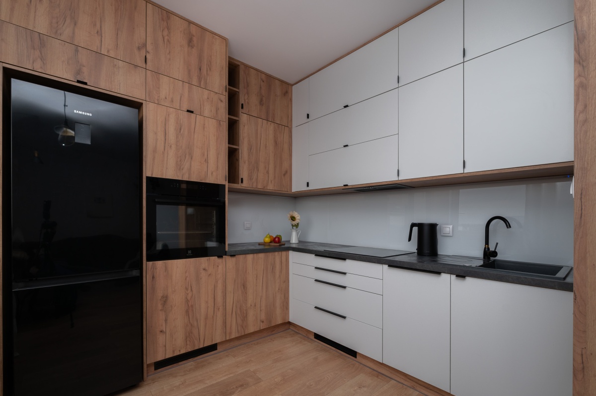 *cześć kuchenna w pełni wyposażona, zawiera lodówkę, zmywarkę, piekarnik, okap oraz płytę grzewczą;