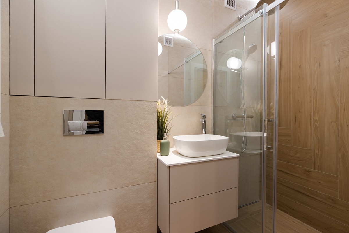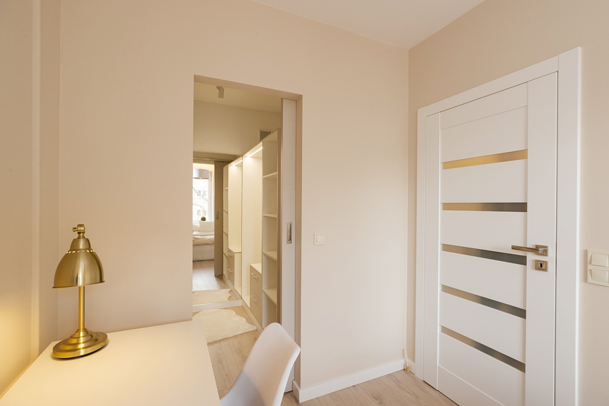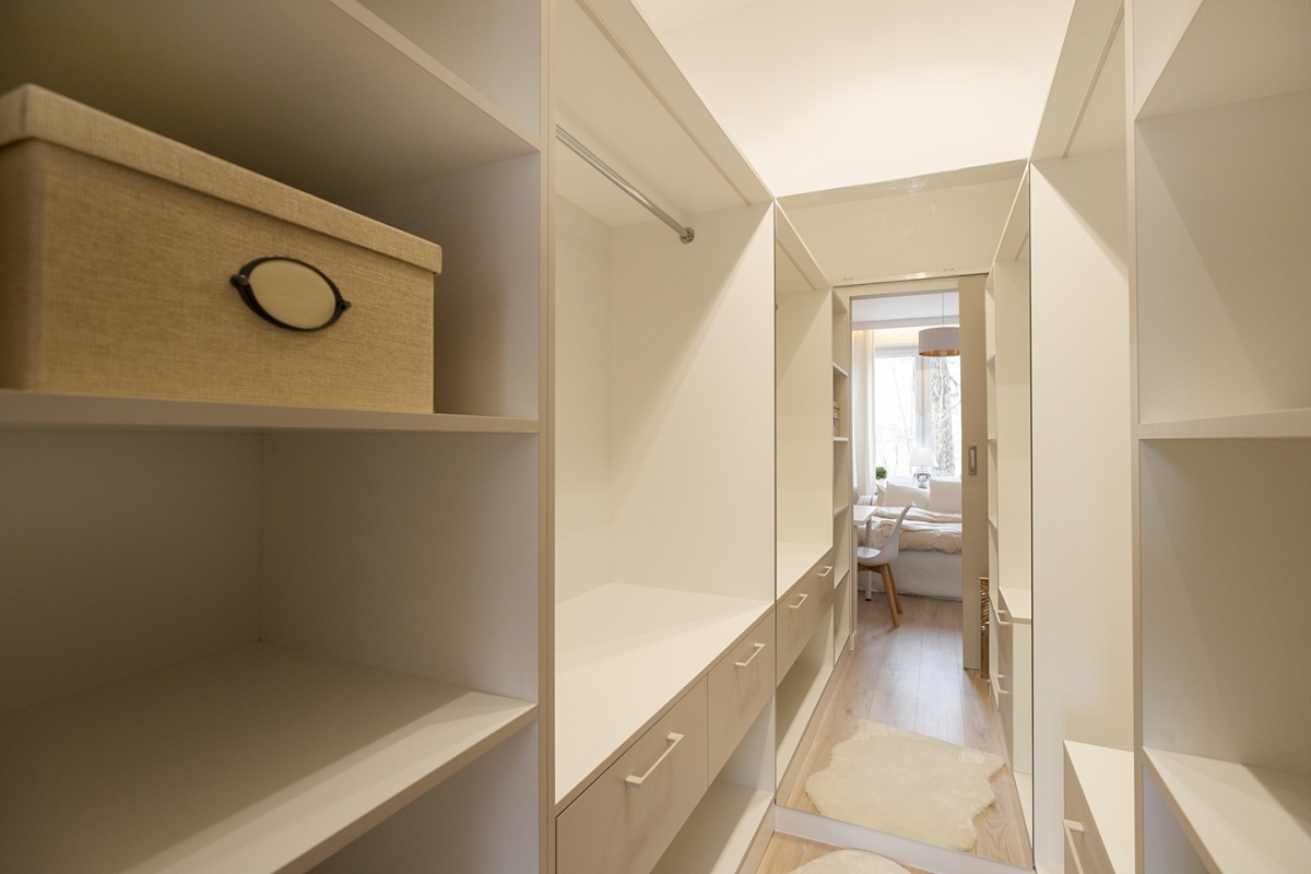 – Garderoba w sypialni i duża szafa w przedpokoju, pozwalają wygodnie zorganizować przestrzeń do przechowywania.