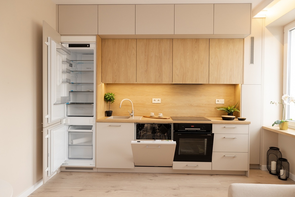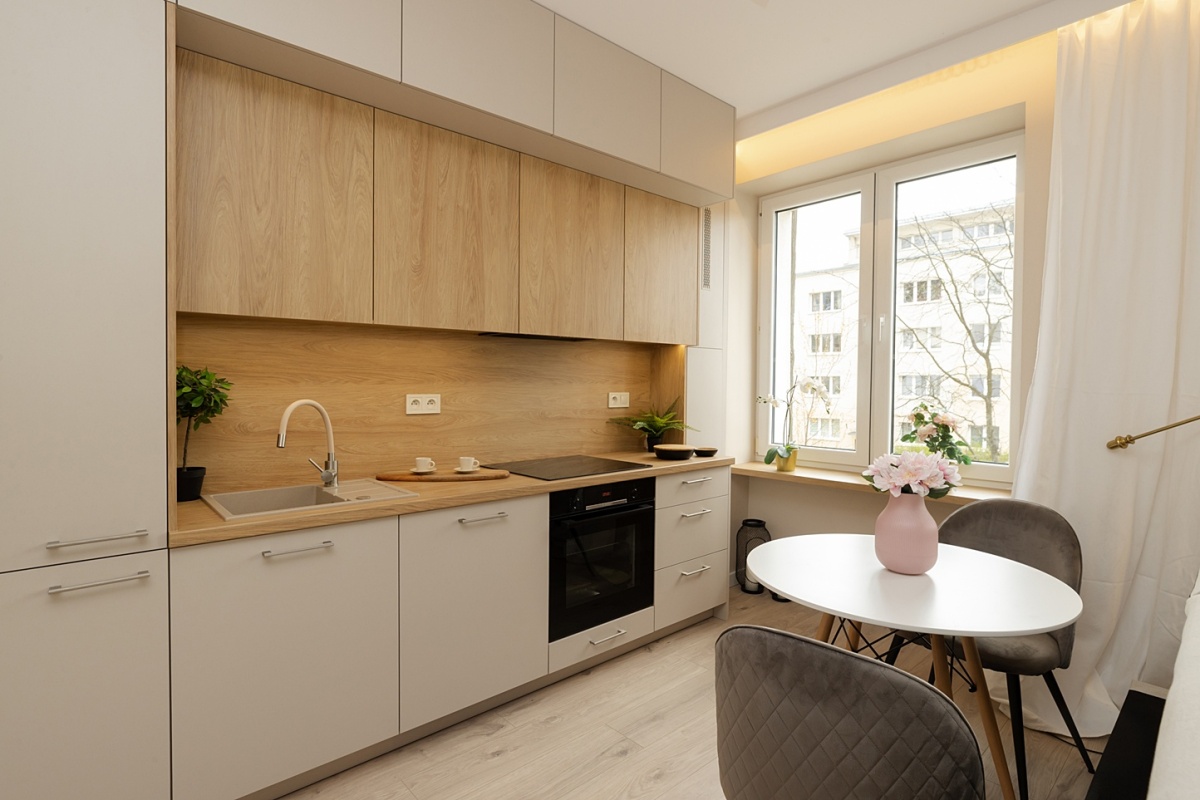 – Świeżo po generalnym remoncie – wszystko jest nowe: instalacja elektryczna i hydrauliczna, sufity podwieszane, wylewka, panele, płytki, armatura, drzwi, oświetlenie, zabudowy od stolarza i kuchnia na wymiar z pełnym wyposażeniem AGD na gwarancji (lodówka, zmywarka, piekarnik, płyta, okap, pralka, suszarka).