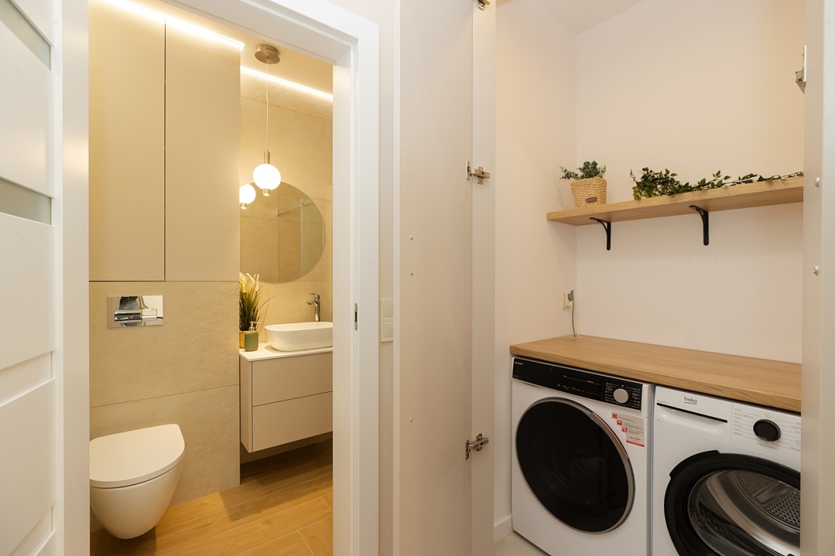 – Oddzielna pralnia, wyposażona w pralkę oraz suszarkę do ubrań.