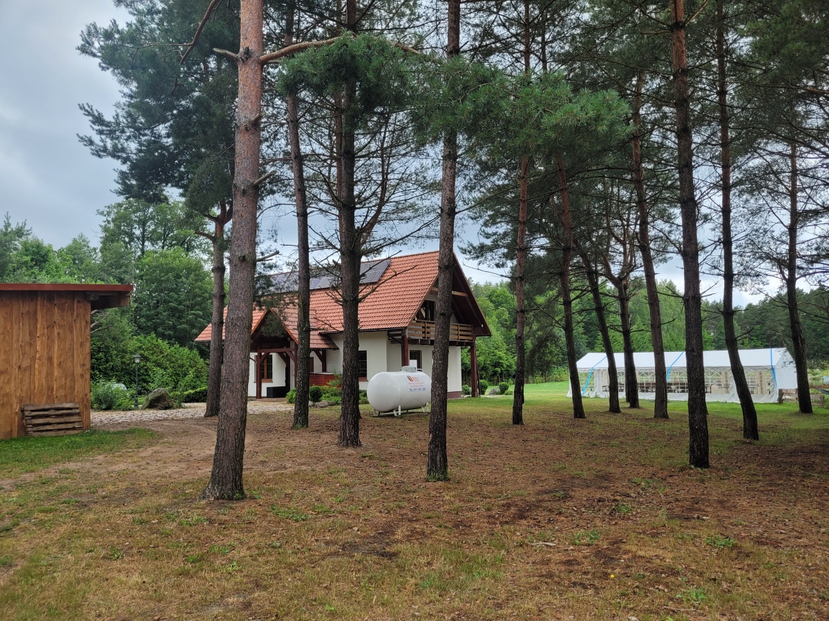 Sprzedamy wolnostojący dom jednorodzinny na dużej działce 1,5ha wraz z dwoma całorocznymi domkami (każdy 35m² powierzchni zabudowy).
