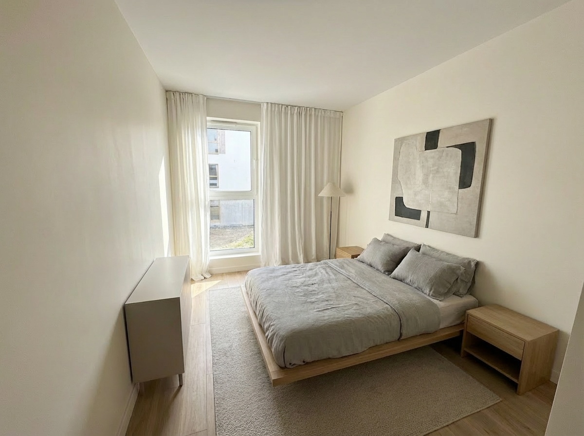 Prezentowane wizualizacje mają charakter poglądowy i zostały wygenerowane przy użyciu narzędzi sztucznej inteligencji. Przedstawiają przykładową aranżację wnętrza i nie stanowią odzwierciedlenia stanu faktycznego nieruchomości ani oferty wykończenia.