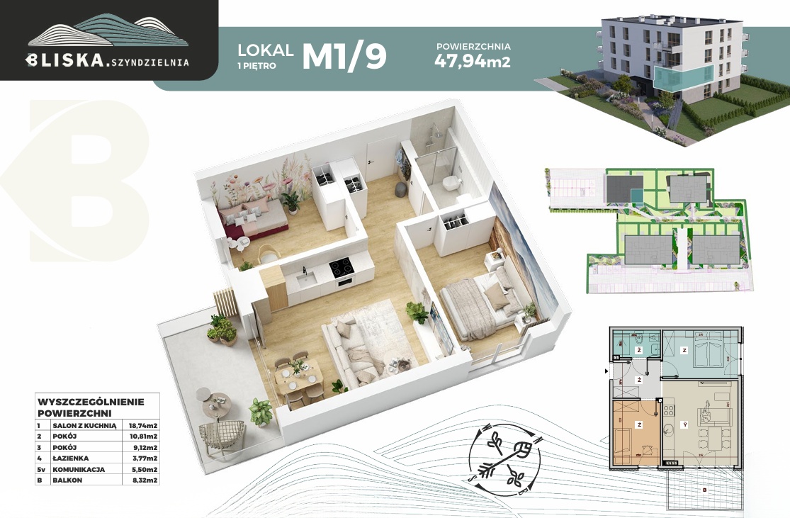Funkcjonalne 3-pokojowe mieszkanie z przestronnym balkonem w kameralnej inwestycji Bliska Szyndzielnia. Idealne dla rodzin, które chcą połączyć bliskość natury z wygodą miejskiego życia.