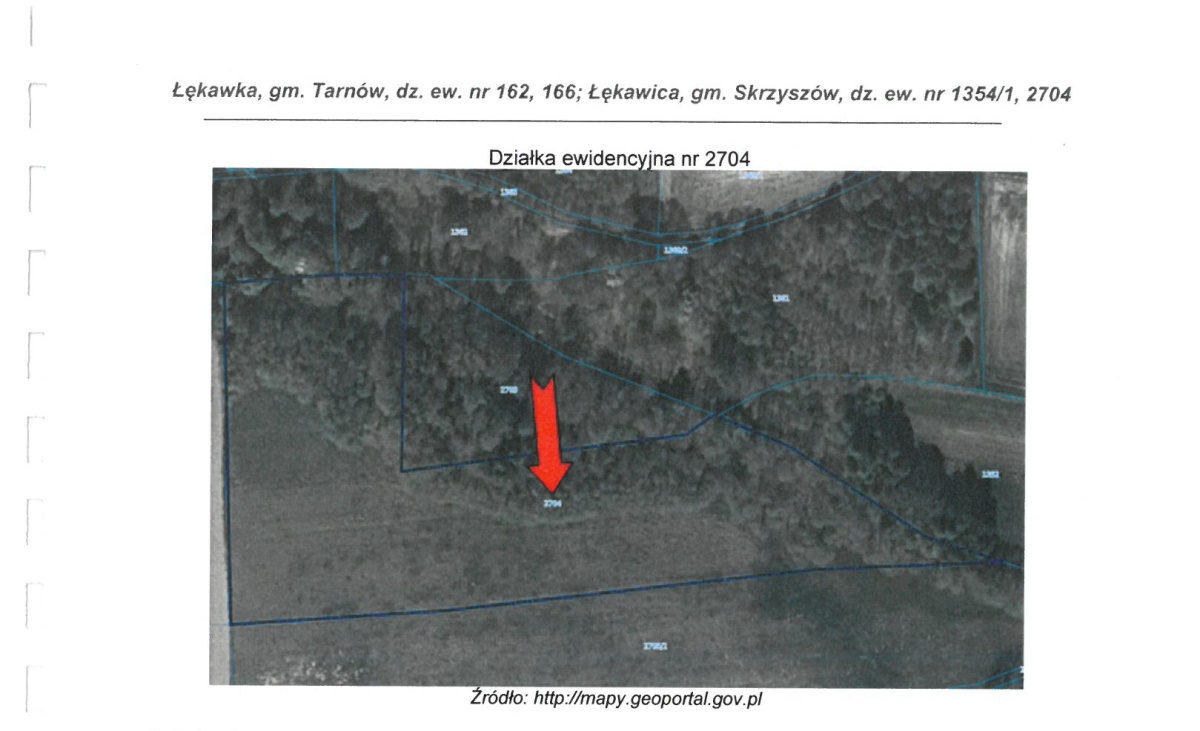 Konkurs na sprzedaż prawa własności nieruchomości gruntowej niezabudowanej stanowiącej działkę o nr 2704 o powierzchni 0,6800 ha, położoną w miejscowości Łękawica, gmina Skrzyszów objętej księgą wieczystą nr TR1T/00087491/7, cena wywoławcza 12.750,00 zł (słownie: dwanaście tysięcy siedemset pięćdziesiąt złotych i zero groszy).