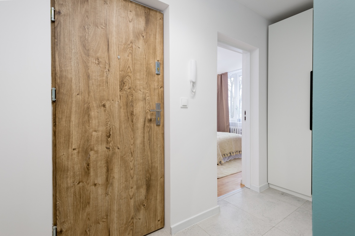 mieszkanie zabezpieczone domofonem, czysta i schludna klatka schodowa