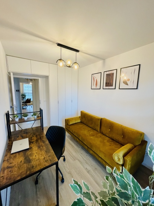 – drugiej sypialni/gabinetu (wygodna rozkładana sofa, duża szafa, regał, biurko),