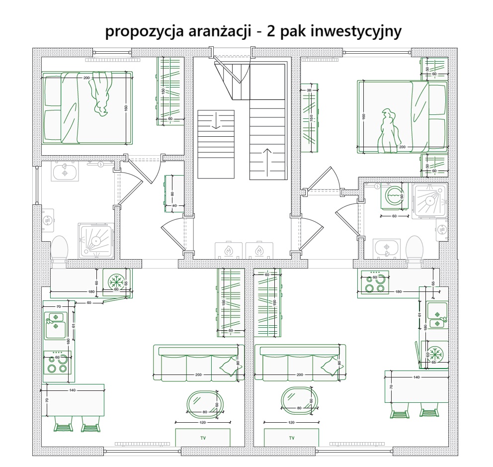 Możliwość zrobienia mieszkań 2 pokojowych po ok. 30-32m2.