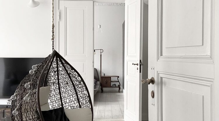 To mieszkanie z historią. Przed wojną mieszkał w nim z rodziną niemiecki właściciel kamienicy, którego potomków mieliśmy nawet okazję poznać. Było to jego prywatne mieszkanie, położone na najlepszej kondygnacji, pozostałe mieszkania w budynku były przez niego wynajmowane. Czarne pianino widoczne na zdjęciu, pochodzące z przedwojennej szczecińskiej manufaktury pianin i fortepianów G. Wolkenhauer, należało do właścicieli, stanowi więc integralną część tego mieszkania.