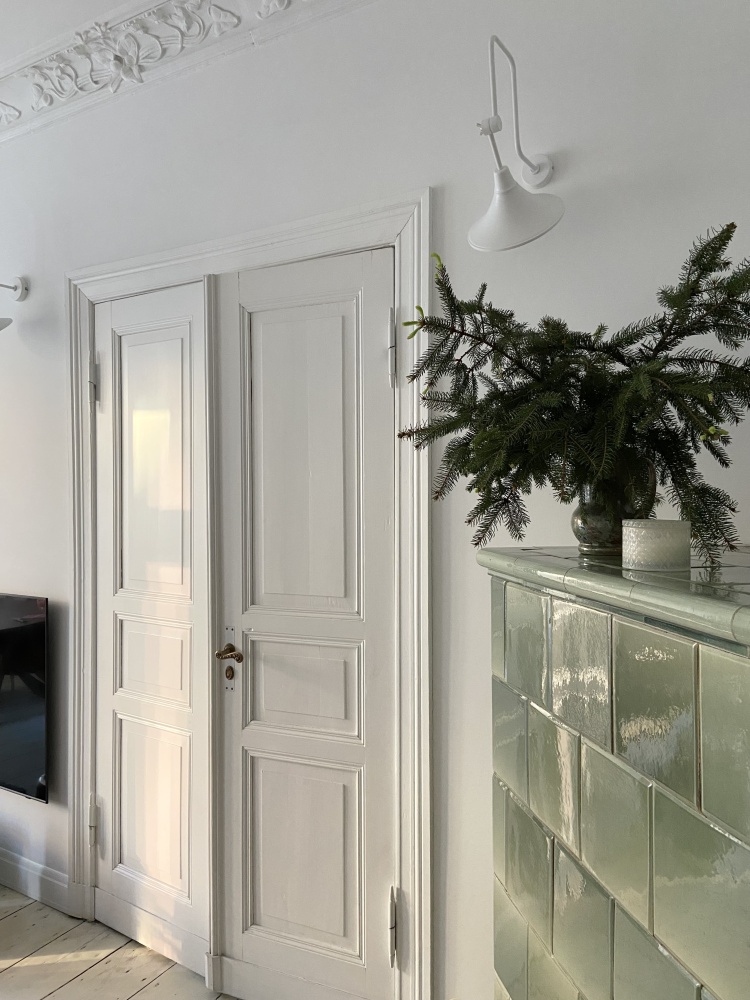 Mieszkanie przeszło gruntowny remont, dostosowaliśmy je też funkcjonalnie do współczesnego trybu życia. Wymieniliśmy m.in. okna- na ciche 3 szybowe, wszystkie instalacje i piony sanitarne, nawet częściowo tynki i strop. Zachowaliśmy i odrestaurowaliśmy historyczne elementy- drewniane podłogi z szerokich desek, wszystkie drzwi wewnętrzne oraz zewnętrzne, sztukaterie sufitowe. Zachował się także oryginalny piec kaflowy, przełożony przez zduna stanowi nie tylko wyjątkową dekorację, ale może być również źródłem ciepła w długie zimowe wieczory.