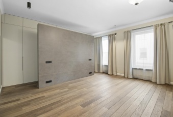 To przestronne, 182-metrowe mieszkanie mieści się na 6 piętrze odnowionej kamienicy. W jego skład wchodzą: