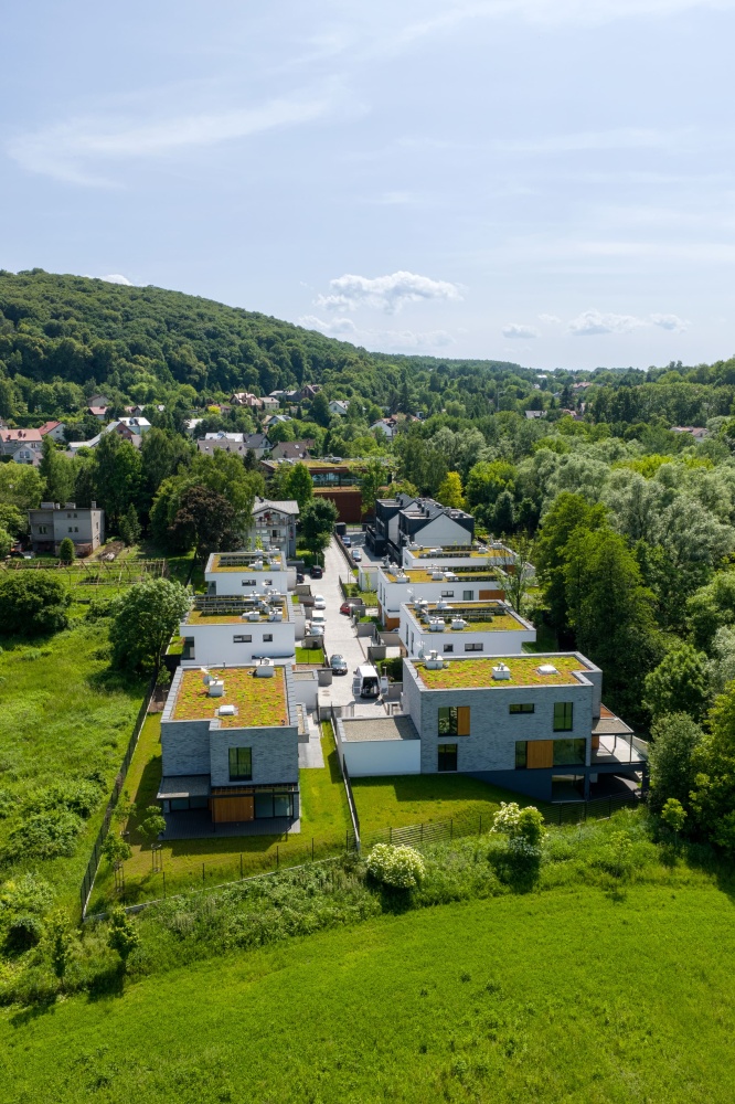 W najbardziej prestiżowej części Woli Justowskiej, przy ul. Wiosennej, znajduje się nowy dom klasy premium o powierzchni 377,62 m² (ok. 300 m² użytkowej) na działce 602 m².