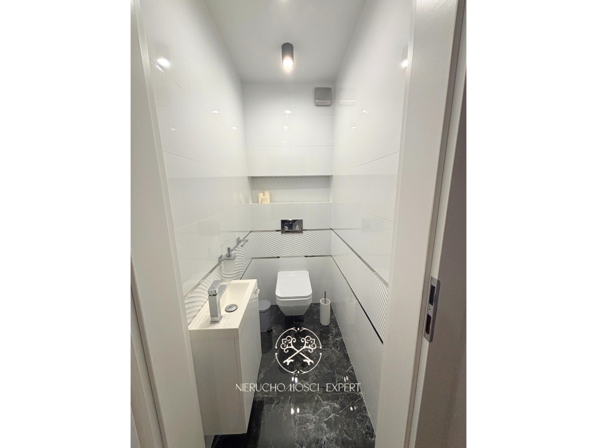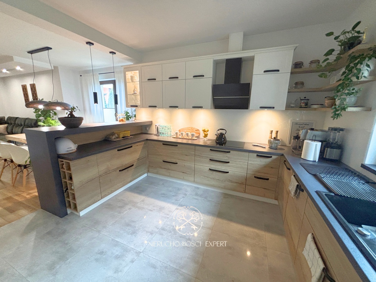 Dom został zaprojektowany i wykończony z dbałością o każdy detal. Wnętrza tworzą harmonijną, nowoczesną przestrzeń, w której funkcjonalność łączy się z estetyką. Wszystkie zabudowy meblowe wykonano na wymiar, a całość wyposażenia pozostaje w cenie nieruchomości.