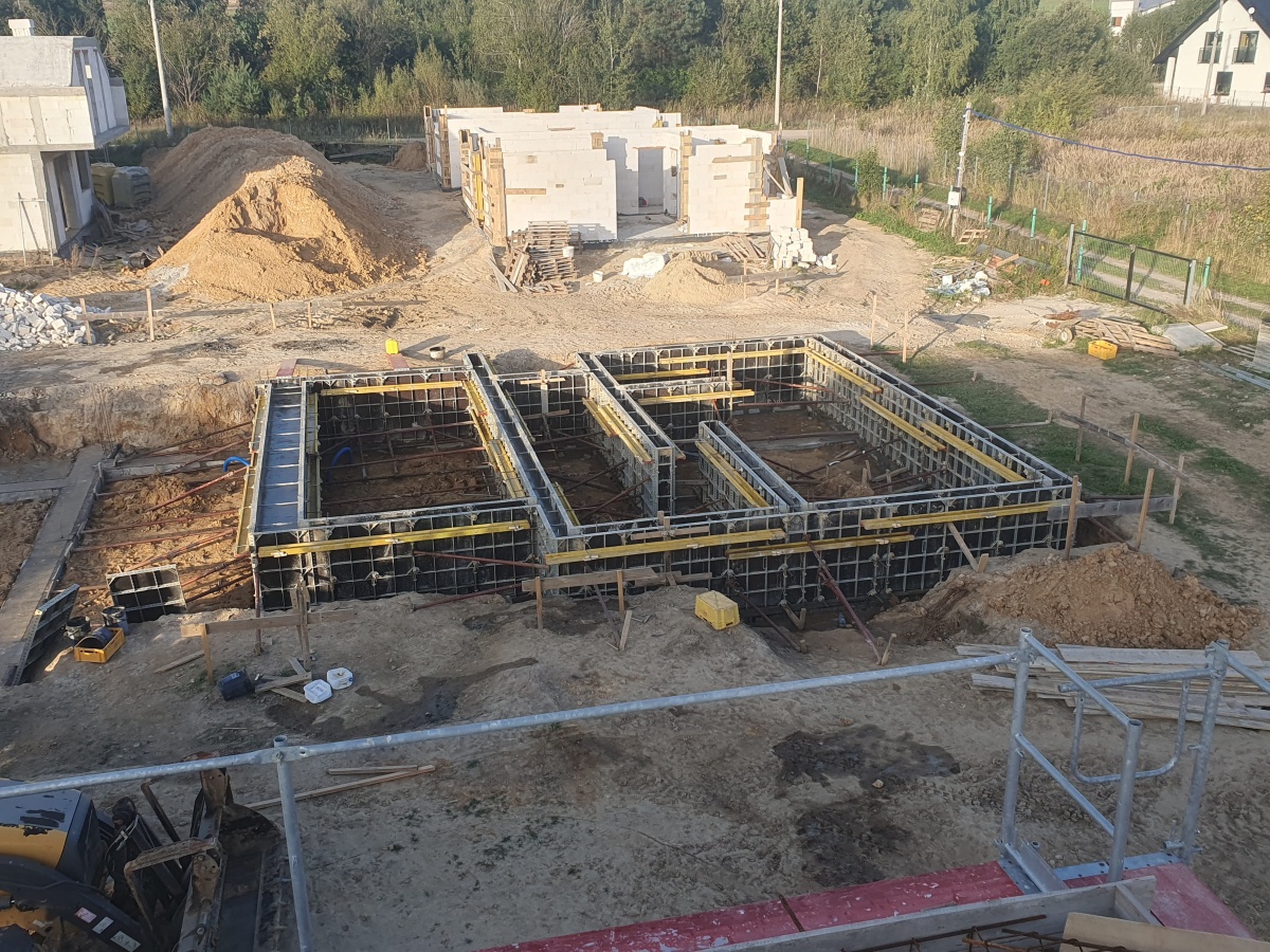 wykonane w całości z żelbetonu (ławy +ściany). Ściana fundamentowa od samej ławy zaizolowana jest XPS-em gr. 10cm.
