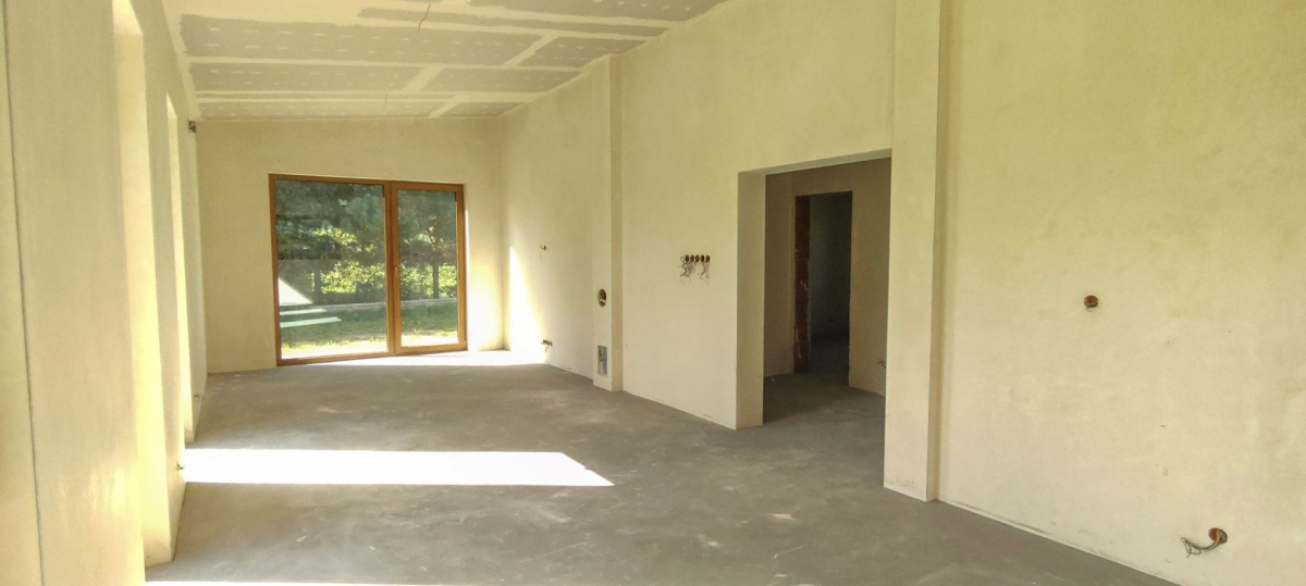 Dom jest w stanie deweloperskim zamkniętym – z nową elewacją, stolarką okienną i pokryciem dachowym, gotowy do wykończenia według własnych upodobań.