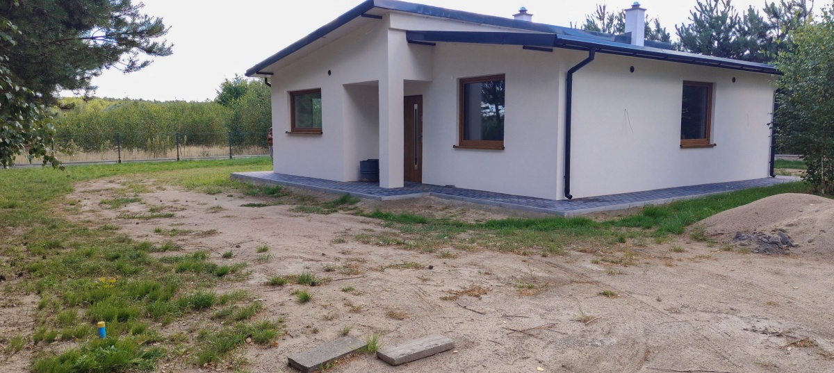 Nowoczesny dom parterowy w stanie deweloperskim | Glinno Kolonia | 12,41 arów, las, Jeziorsko