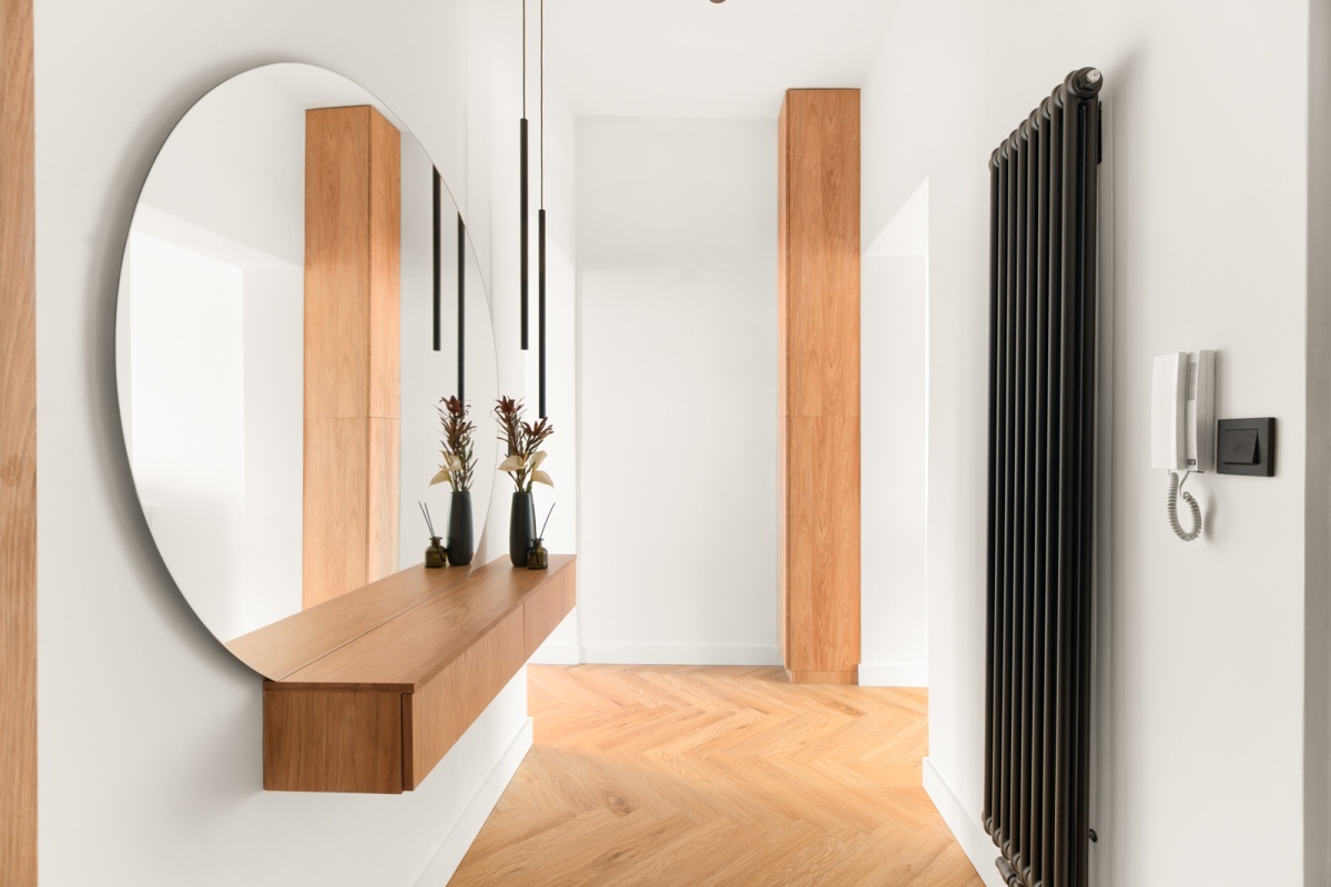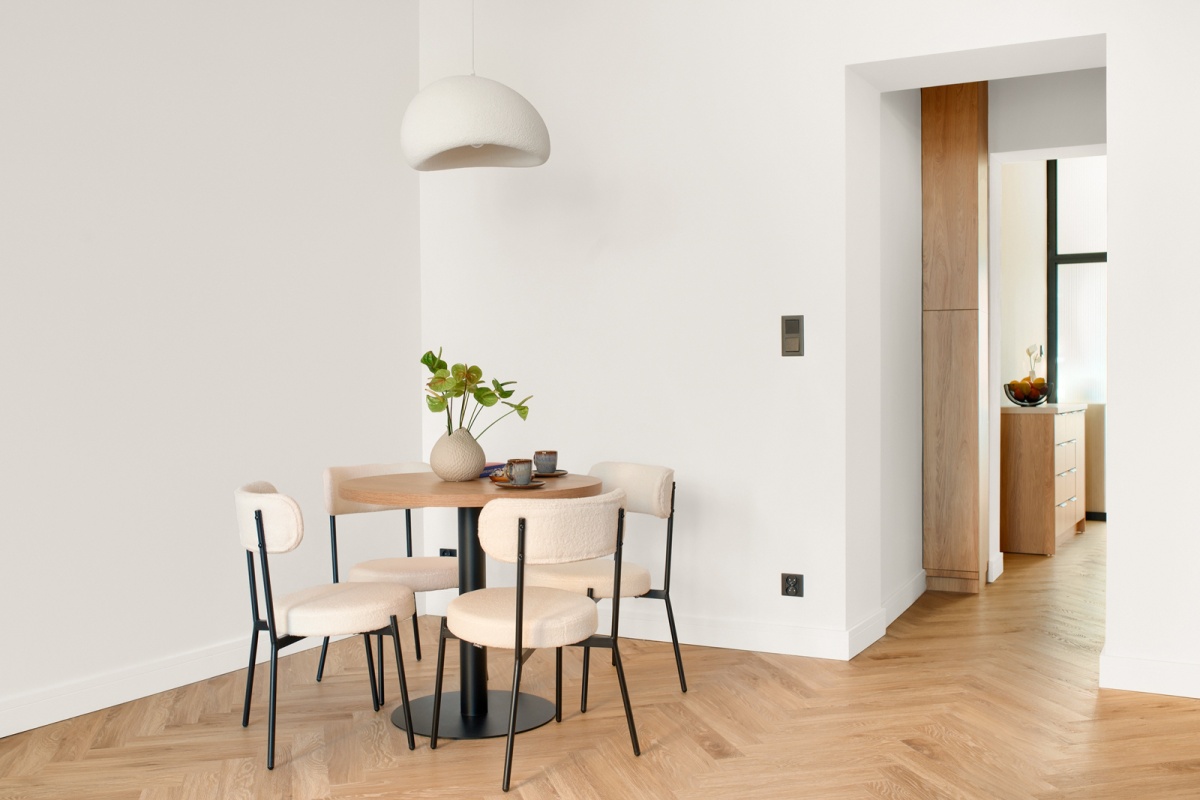 – w każdym pomieszczeniu stylowe, dodające charakteru oświetlenie, – wszystkie meble z wyjątkiem łózka wykonane na zamówienie przez stolarza,