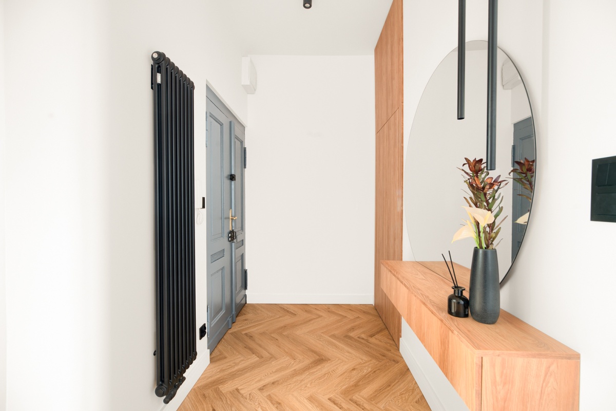 – na podłodze najwyższej jakości panel winylowy ułożony w jodełkę,