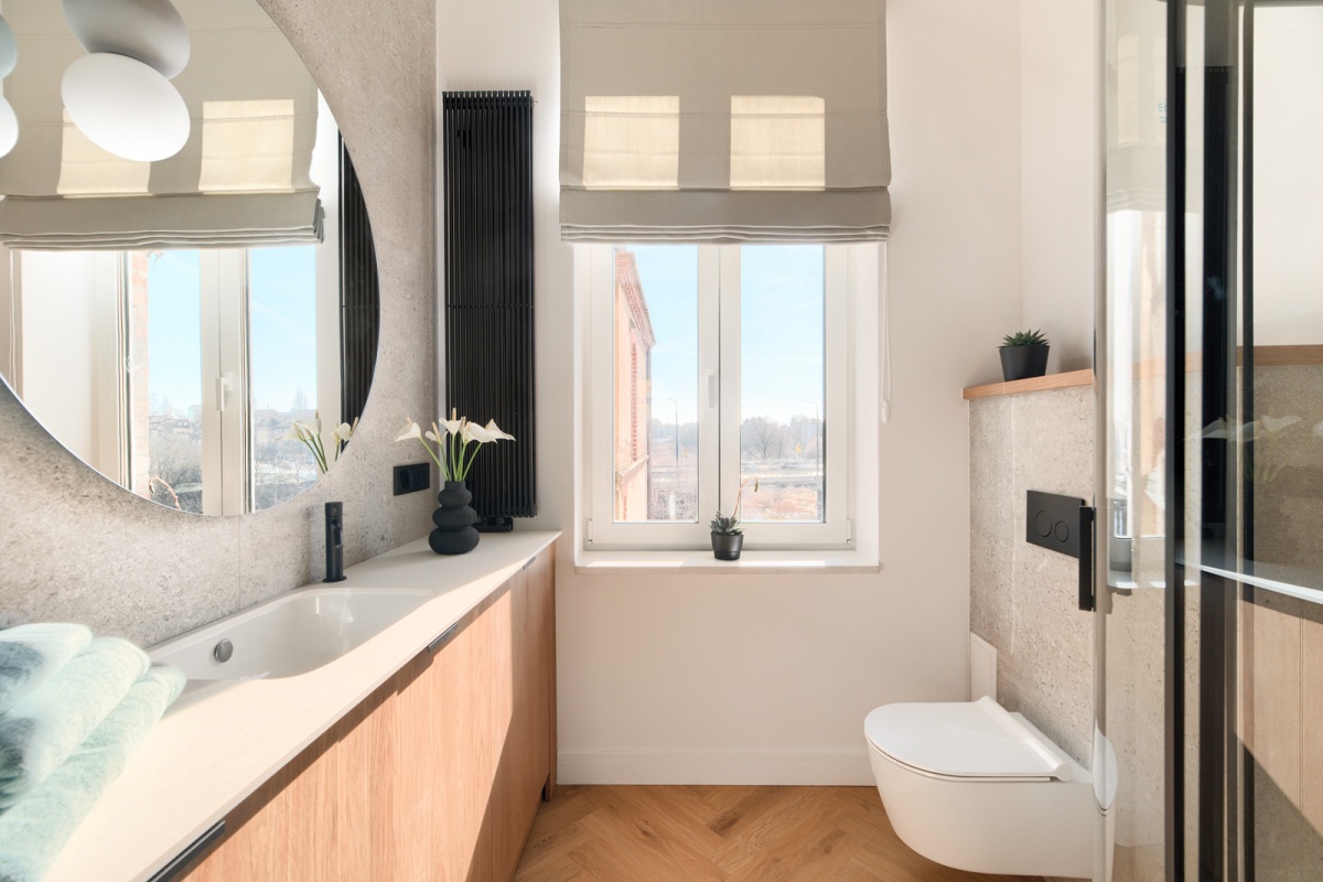 – w całym mieszkaniu kamienne parapety.