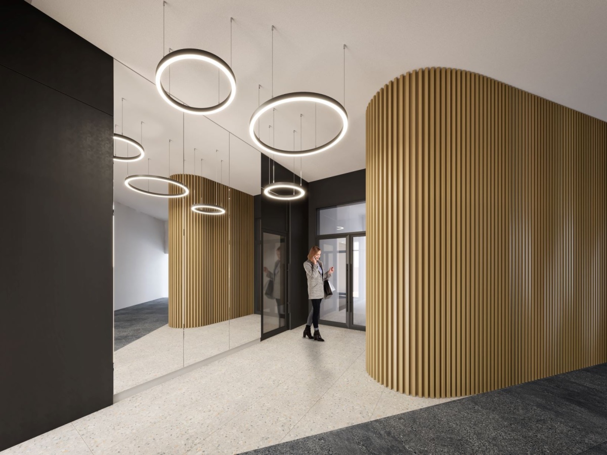 Lokal o powierzchni 55,7 m², w stanie deweloperskim, położony na Warszawskiej Woli, przy ul. Kolejowej 19 – tuż przy granicy z Centrum Warszawy.