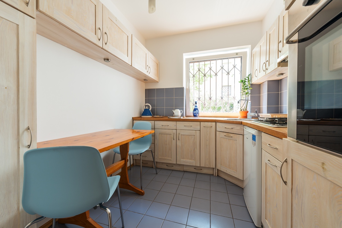 *Dobry rozkład mieszkania, do każdego z pomieszczeń wejścia z korytarza. Okna dużego pokoju i sypialni wychodzą na spokojną, ślepą ulicę Schillera, okno kuchni na zamknięte patio.