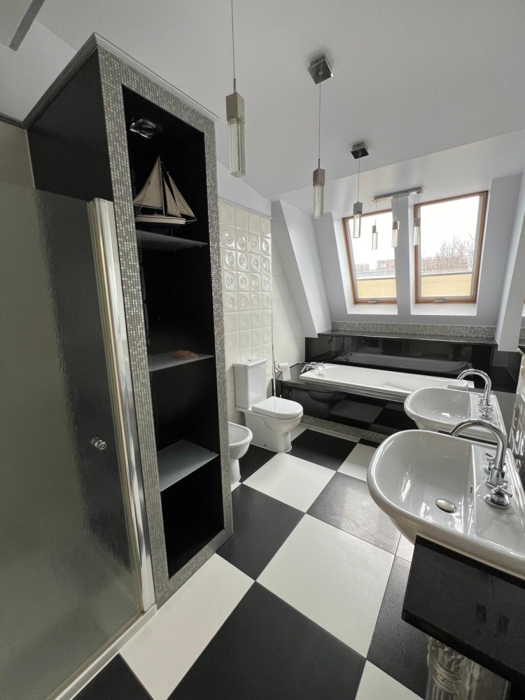W związku z tym, iż de facto mamy do czynienia z trzema nieruchomościami nowy właściciel może dowolnie zaaranżować apartament również w kierunku biznesowym np. dla osób, które pracują w wolnych zawodach.