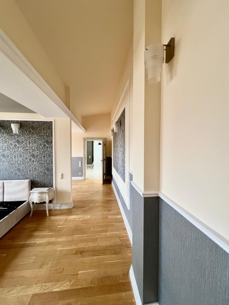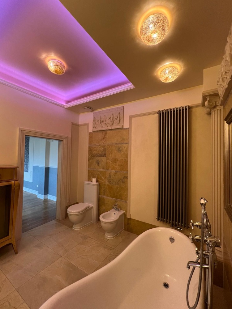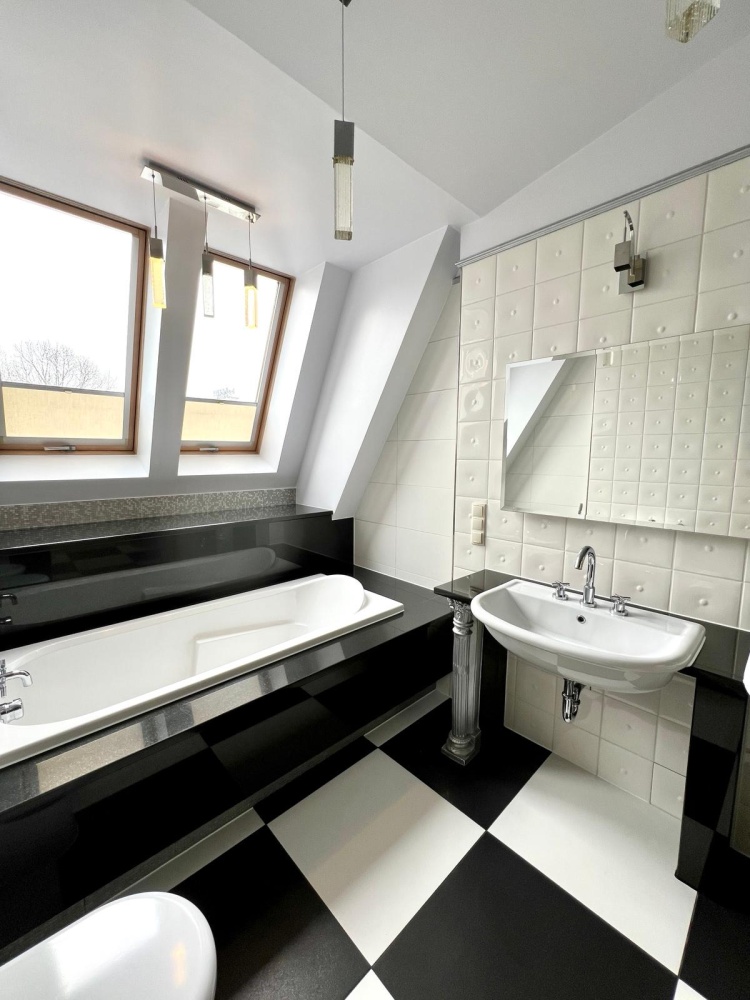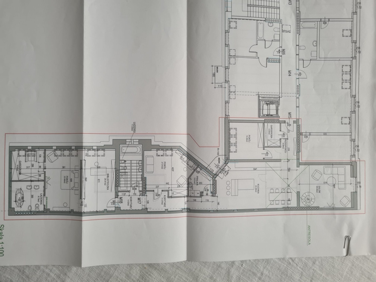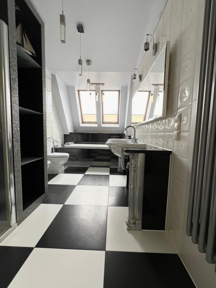 2. APARTAMENT: projekt został wykonany przez wiodącego częstochowskiego architekta (rzut w załączeniu) i w 2012r. został zrealizowany z zastosowaniem najwyższej jakości materiałów oraz wyposażony w profesjonalny sprzęt. Na powierzchnię 201,07m2 składają się: HOL + Garderoba, SALON, przestronna JADALNIA z aneksem kuchennym i balkonem, ŁAZIENKA (kafle REVES de REX), pokój/gabinet/Sypialnia1, Pokój/Gabinet/SYPIALNIA2 z GARDEROBĄ, POKÓJ/Gabinet/SYPIALNIA3 z GARDEROBĄ oraz ŁAZIENKĄ (Marmur) i biblioteką (możliwość wydzielenia dwóch pomieszczeń), PRALNIA. Jak widać na załączonych zdjęciach ponadczasowa stylistyka przetrwała próbę czasu i daje gwarancję utrzymania wartości w przyszłości. DRZWI I STOLARKA zostały wykonane z drewna w jednym z najlepszych zakładów stolarskich. PODŁOGI: kafle (hol, jadalnia, komunikacja), parkiet dębowy (pokoje, salon). ŚCIANY: profesjonalne gładzie i dekory gipsowe (100% odnowione i pomalowane w 2025r.), stiuk wenecki, belgijskie tapety jedwabne; fototapeta, ręcznie wykonane dekoracje artystyczne, żyrandole MURANO + oświetlenie wg projektu; dwie ŁAZIENKI: marmurowa oraz kaflowa, dwie wanny, prysznic (najwyższej jakości armatura GLOBO, TRES, Roca, KLUDI); ZABUDOWA KUCHENNA: zrealizowana przez wiodący warsztat stolarski, fronty i obudowy z litego drewna szczotkowanego, z wysokiej klasy sprzętem AGD: zmywarka, lodówka, płyta indukcyjna, piekarnik, mikrofala SIEMENS+zabudowana krajalnica i toster RITTER); MEDIA: centralne ogrzewanie (miejskie opłaty zawarte w czynszu), ciepła woda (dwa energooszczędne bojlery elektryczne), Klimatyzacja (2 szt. jadalnia i sypialnia), energia elektryczna, Internet i TV, Monitoring kamienicy, własna instalacja alarmowa, domofon.