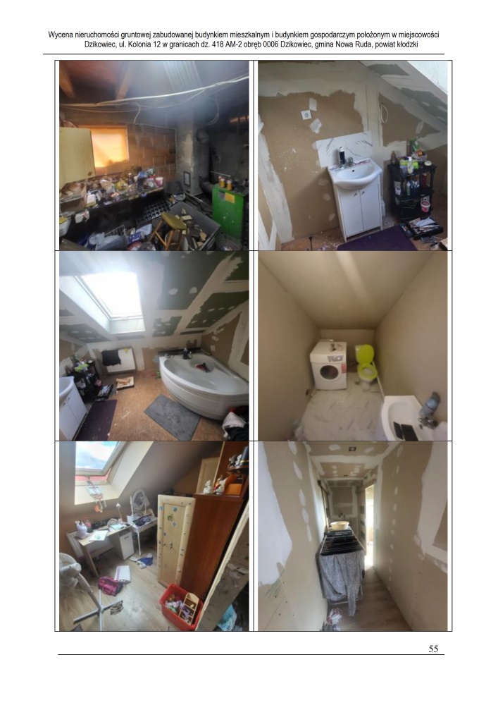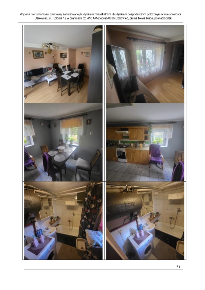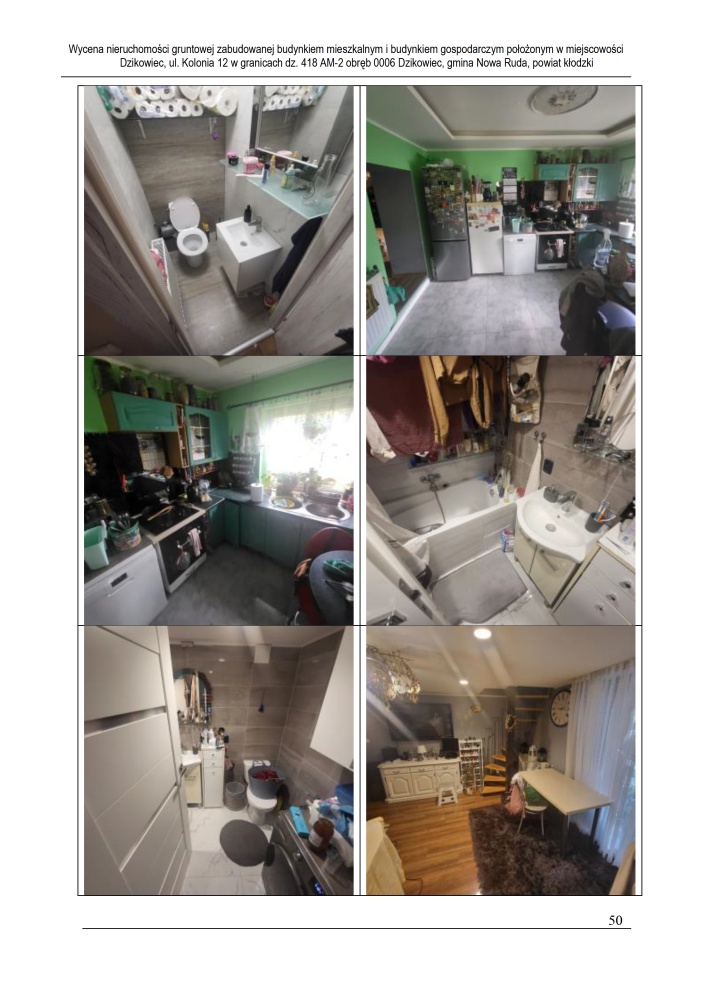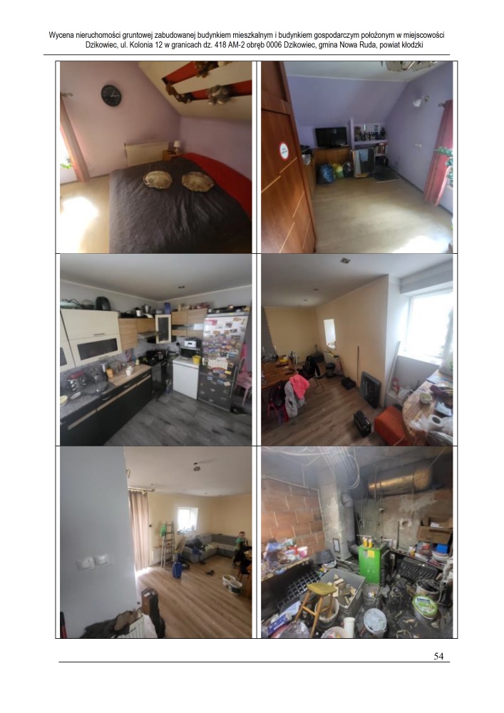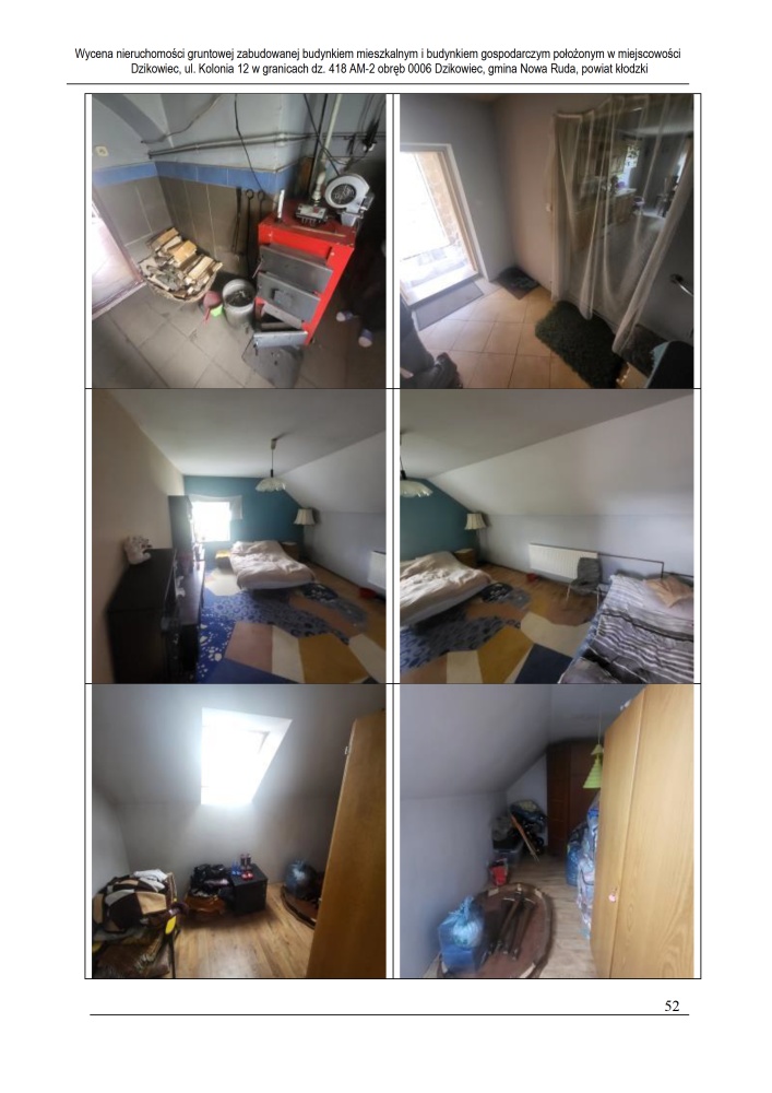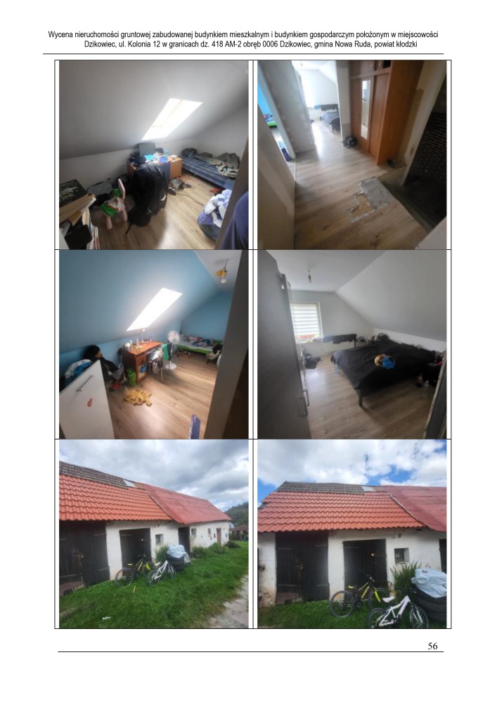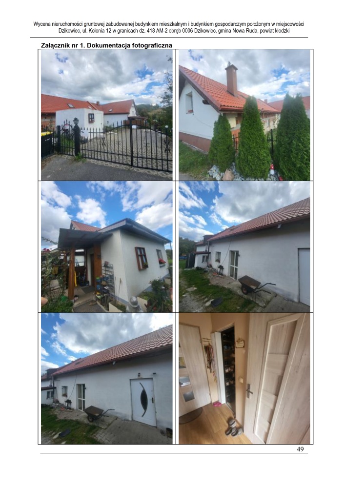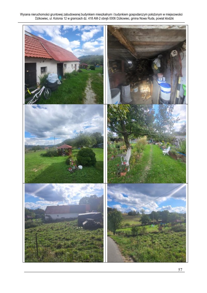 Nieruchomość leży około 4 km od miasta Nowa Ruda, przy drodze gruntowej nieutwardzonej, w otoczeniu zabudowy mieszkaniowej jednorodzinnej, zagrodowej oraz terenów niezabudowanych. Działka podzielona na część zabudowaną o powierzchni 4 300 m² oraz część rolną o powierzchni 19 800 m². Dostęp do drogi publicznej przez drogę asfaltową, teren pofałdowany, o nieregularnym kształcie. Częściowo zagospodarowana roślinnością ozdobną, teren ogrodzony przęseł stalowych i paneli stalowych. Uzbrojenie: energia elektryczna, wodociąg gminny, kanalizacja (szambo lokalne), brak gazu sieciowego.