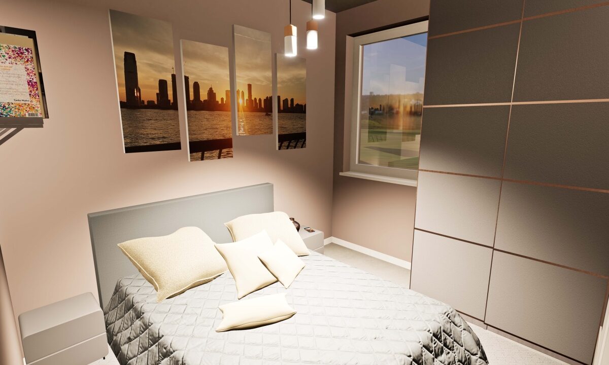 Duża garderoba z możliwością adaptacji na gabinet lub kolejną przytulną sypialnię.