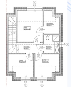 trzy sypialnie (w tym jedną z garderobą) oraz łazienkę na piętrze,